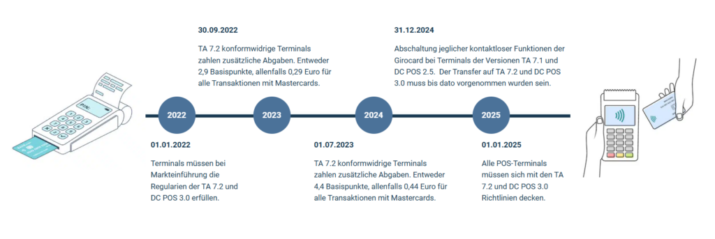 Eine sukzessive Aktualisierung der Vorgänger TA 7.1 sowie DC POS 2.5 auf TA 7.2 und DC POS 3.0 erfolgt bis zum 31.12.2024